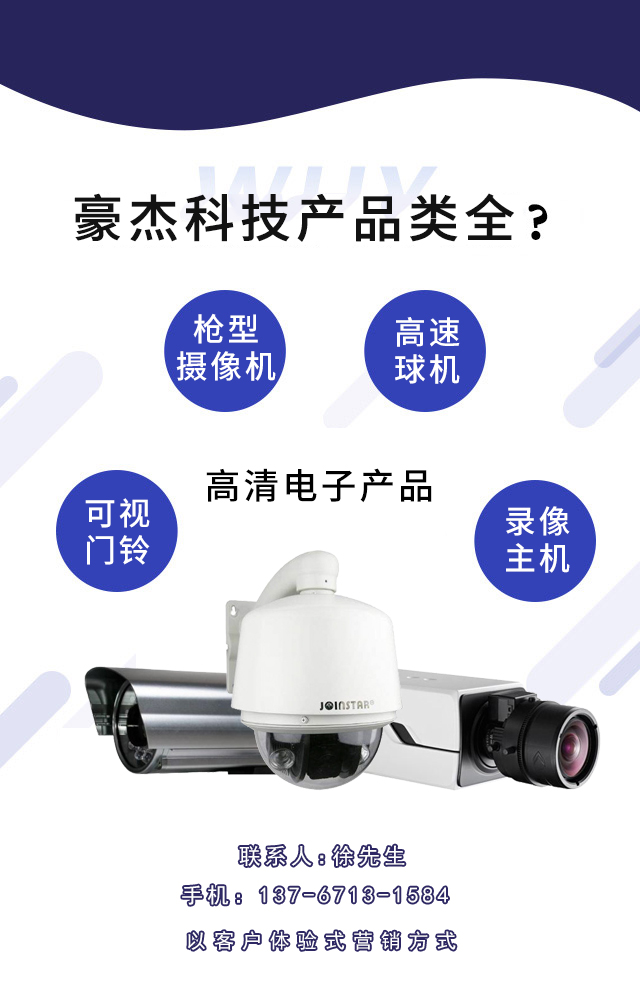 南昌豪杰科技有限公司是南昌市青山湖区公司,我们以经销批发的方式主要经营枪型摄像机、高速球机、录像主机、可视门襟、大屏显示、红外对射、无线可视门铃、电脑配件、LED电子屏幕、公共广播系统、会议室音响投影系统工程、 KTV点歌系统、道闸、通道等产品。